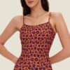 Macaquinho Basics Estampa Onça Coral Poliamida Com Bojo